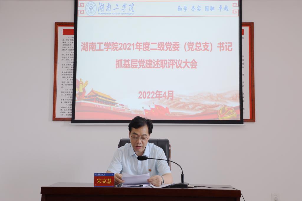 4月21日,学校举行2021年度二级党委(党总支)书记抓基层党建现场述职评议。党委书记宋克慧及其他在家校领导出席,党委副书记、校长曹执令主持会议。