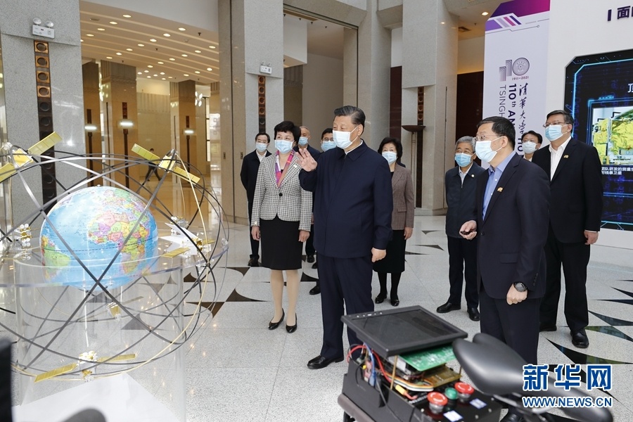 清华大学主楼二层,展示了学校近年来重点教学科研成果。习近平听取了关于增强自主创新能力、助力世界主要科学中心和创新高地建设、提高人文社会学科教育研究水平等情况介绍,对清华大学取得的成绩给予充分肯定。习近平指出,要坚持中国特色社会主义教育发展道路,充分发挥科研优势,增强学科设置的针对性,加强基础研究,加大自主创新力度,并从我国改革发展实践中提出新观点、构建新理论,努力构建中国特色、中国风格、中国气派的学科体系、学术体系、话语体系。