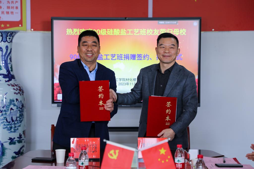 仪式上,双方签订了捐赠协议。随后,与会人员共同为90级硅酸盐工艺班认捐树举行揭牌仪式,并合影留恋。整个捐赠与揭牌仪式在热烈的氛围中圆满结束。(一审:罗维 二审:罗晓君)