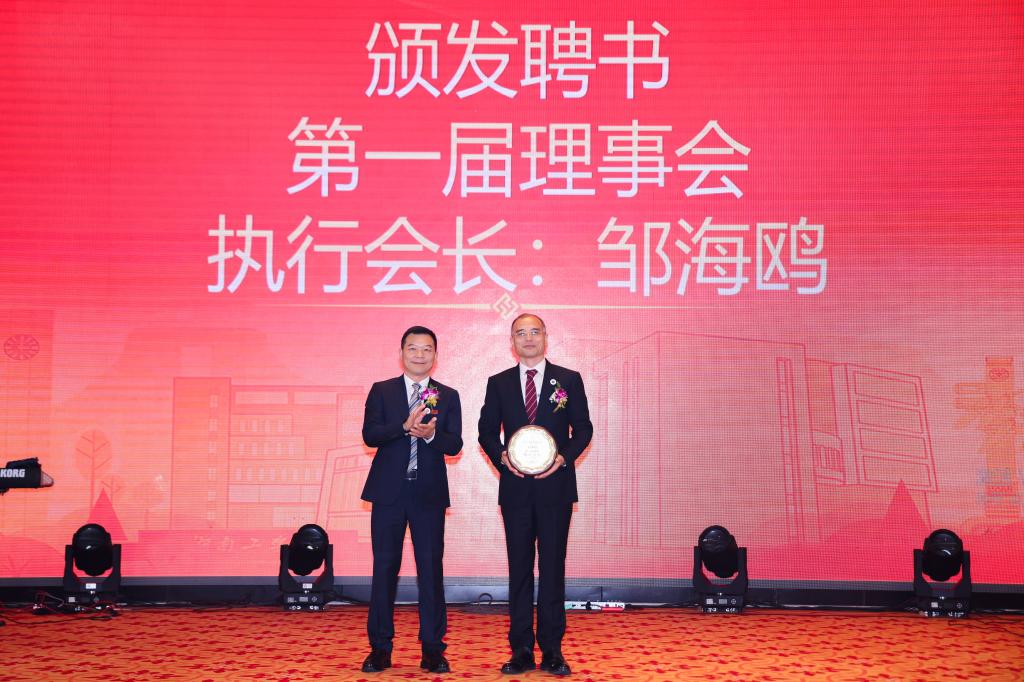 校党委书记曹执令为深莞校友会新任执行会长邹海鸥颁发聘书