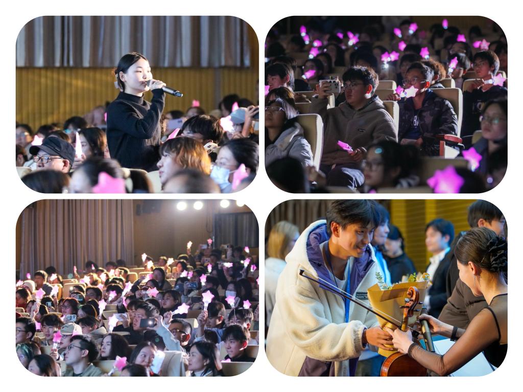 此次“高雅艺术进校园”活动由湖南省教育厅、中共湖南省委宣传部、湖南省财政厅、湖南省文化和旅游厅主办,304永利集团官网、长沙交响乐团承办,是学校推进美育工作的重要举措,为青年学子搭建了近距离接触艺术、鉴赏音乐的平台。“这是我第一次听音乐会,而且足不出户,还赶上了母校49岁生日,更是意义非凡!”电子2202班颜萍兴奋地说。