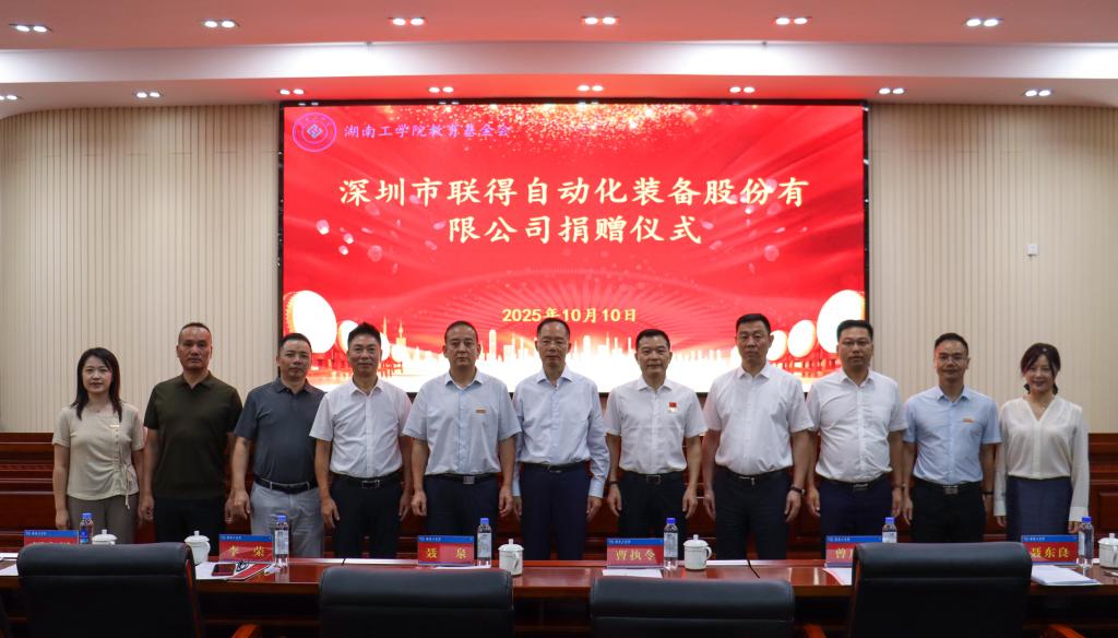 2025 年 10 月 10 日,1987届机械制造工艺及设备专业校友、深圳市联得自动化装备股份有限公司董事长聂泉向永利基金会捐赠仪式在船山报告厅举行。党委书记曹执令、校长曾广胜、联得装备董事长聂泉、董事长特别助理李荣等出席。仪式由校友联络中心主持。