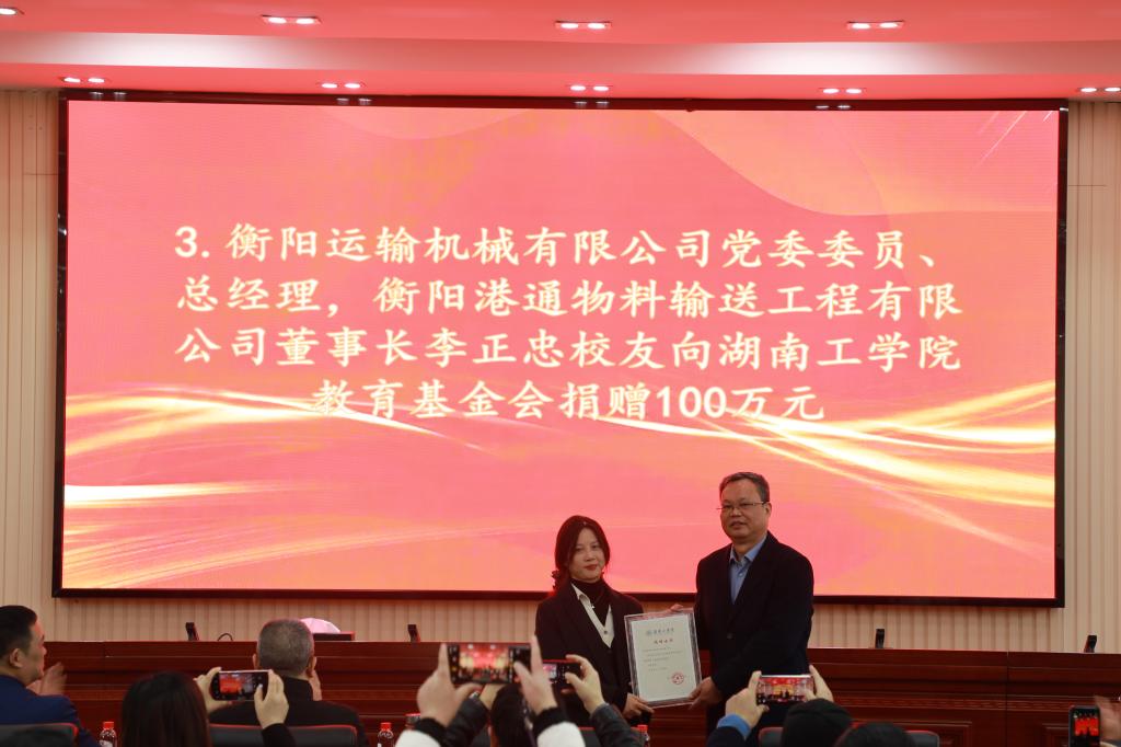 银杏树下年少日,时至岁末忆渐浓。20241225日,衡阳港通物料输送工程有限公司向304永利集团官网捐赠仪式暨304永利集团官网教育基金会“TERRA教育发展基金”成立大会在船山报告厅隆重举行。校党委书记曹执令,党委委员、副校长刘龙昌,衡阳港通物料输送工程有限公司董事长、1985届工业安全工程专业李正忠等6位校友出席。学校各二级学院党委书记、师生代表以及教育基金会全体成员参加会议。大会由校友联络中心主任贺令亚主持。