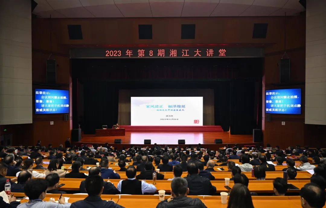 11月18日,2023年第8期“湘江大讲堂”在省委党校举行。省作协名誉主席唐浩明以《家风清正 福泽绵延——湖湘文化中的家教家风》为题,从湖湘地区家教家风特点出发,为现场党员干部讲授了一堂内容翔实、生动有趣的家风教育课。