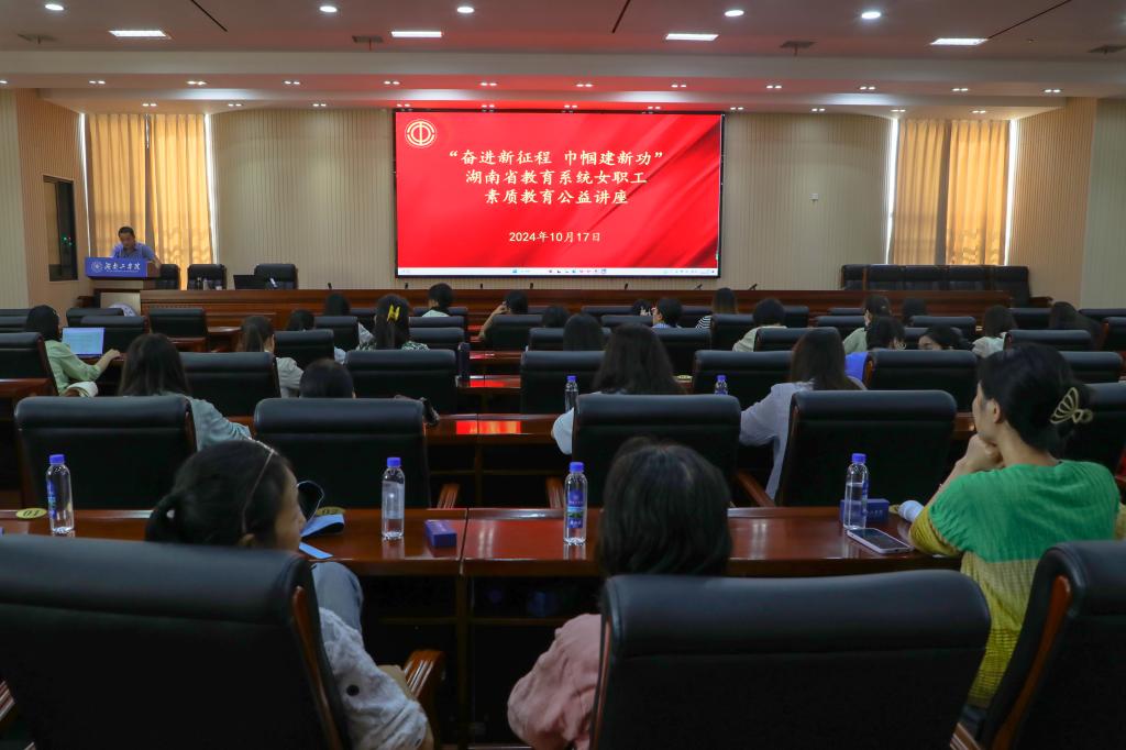 为深入宣传习近平新时代中国特色社会主义思想,贯彻落实习近平总书记关于工人阶级和工会工作、妇女工作的重要论述。10月17日下午,永利举办了“奋进新征程·巾帼建新功”为主题的女职工素质教育公益讲座活动,湖南省总工会干部学校副教授、工运研究所所长陈胜君进行专题授课,来自全校19个分工会的近100名女教职工代表到现场聆听讲座。讲座活动由工会副主席张勇主持。