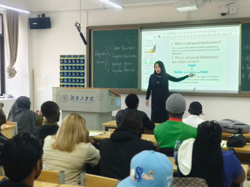 在《高等数学》的课堂上,来自工商管理、软件工程和机械设计制造及其自动化三个专业的国际学生同堂学习,开启了他们在华的求学之旅。课堂上,任课教师准备充分,课件内容详实,讲解深入浅出、细致入微,注重教学互动。学生们听课专注,能够紧跟教师的思路,并踊跃参与课堂互动,形成了良好的学习氛围。
