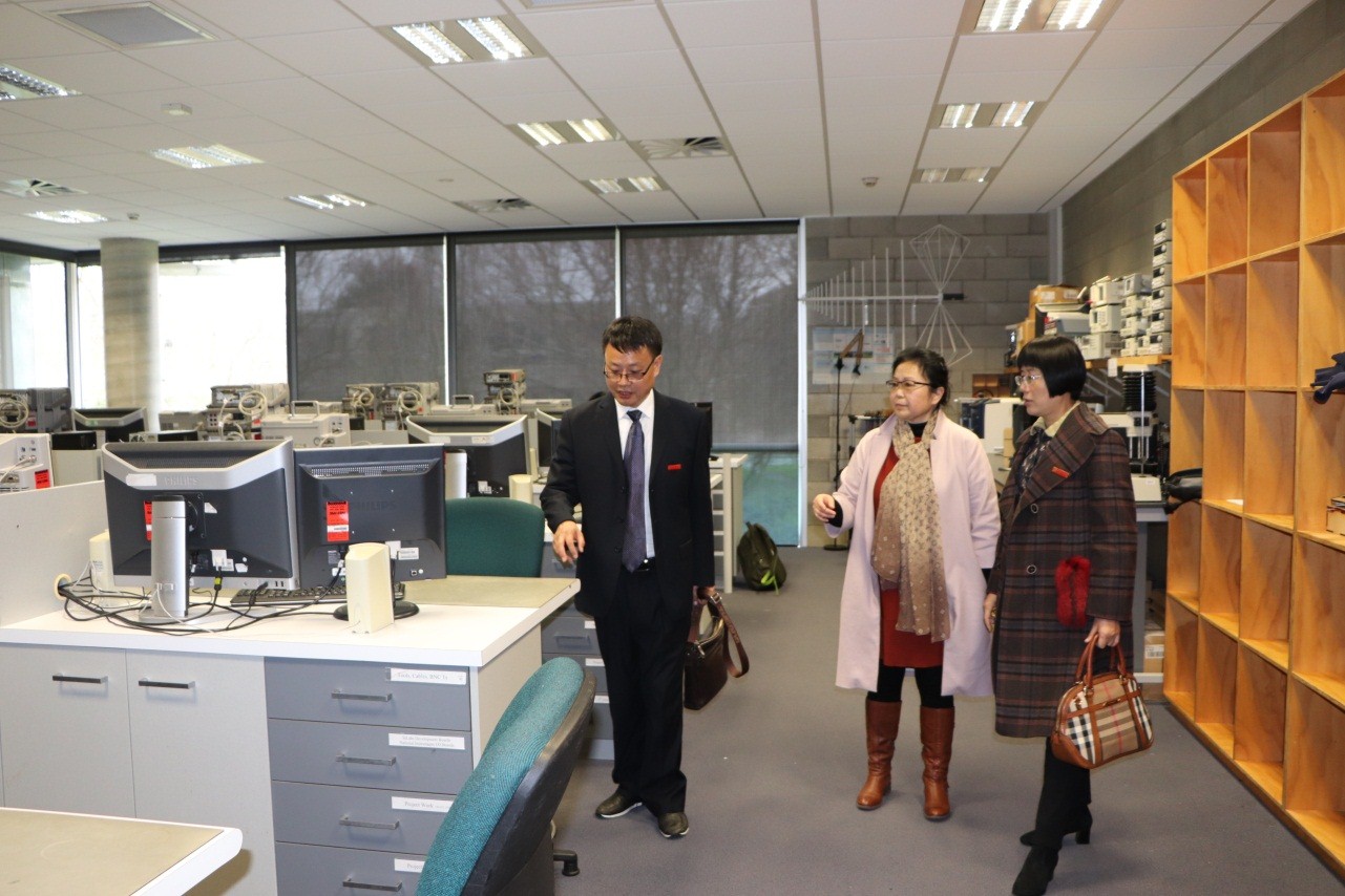 在梅西大学,国际部经理Angela Drake女士热情接待了访问团一行,Angela Drake女士介绍了梅西大学办学历史、办学特色、优势学科、国外留学生、与中国高校和政府合作情况。访问团先后与梅西大学的食品与先进技术学院院长Julian Heyes、自动控制专家Liqiong Tang、机械电子专家Ibrahim Al-Bahadly等进行座谈,就电子电气、机器人和先进制造等专业合作进行了深入交流和探讨,双方对开展学生交换、学分互认、教师互派和教师培养等达成一致意向。在Tang教授的陪同下,参观了电子电气、自动控制、先进加工等实验室。