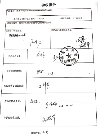 2021年12月关于湘财电采【2021】162429智慧财务建设服务器项目验收情况公告