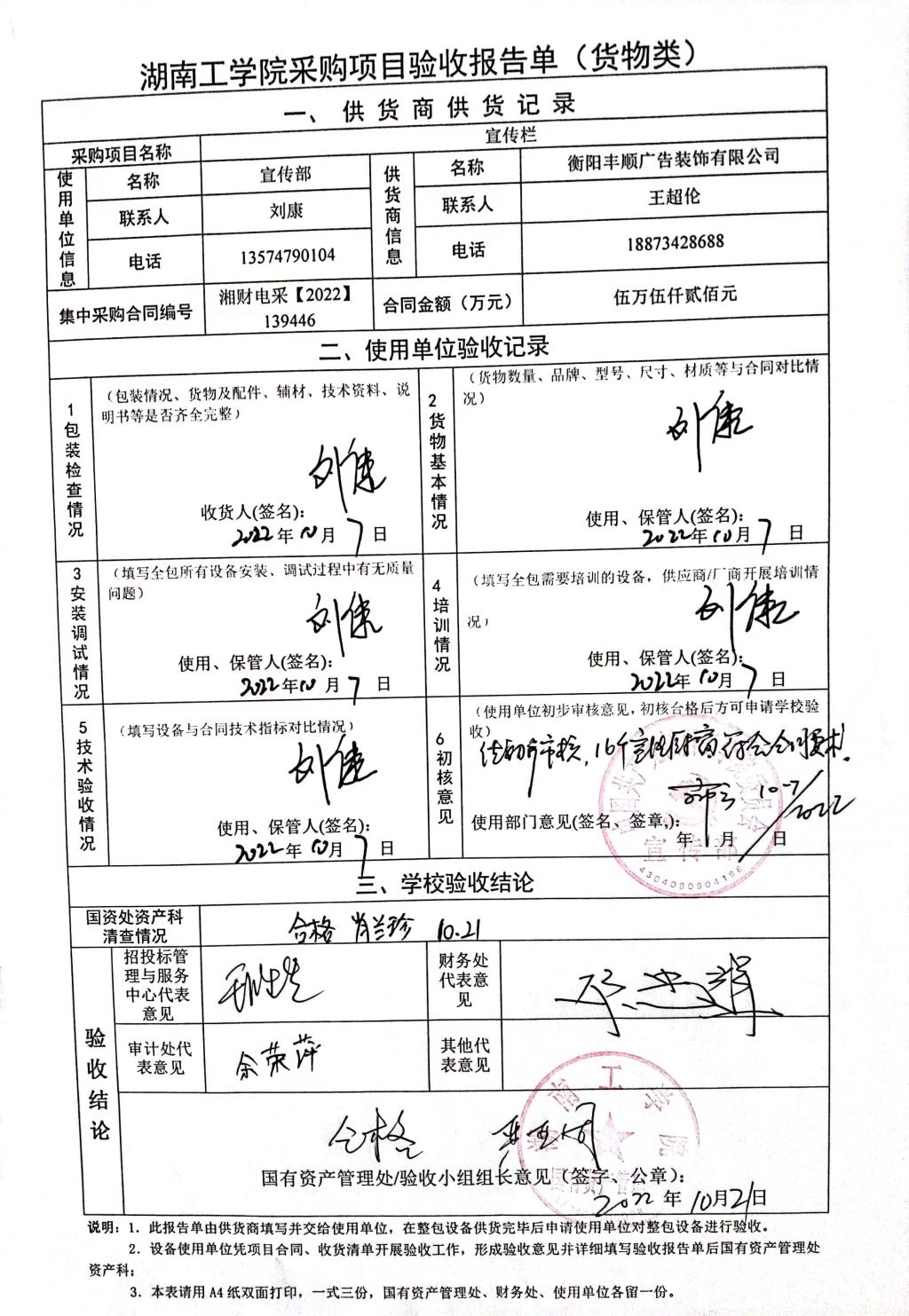 2022年10月关于湘财电采【2022】139446号项目验收情况公告