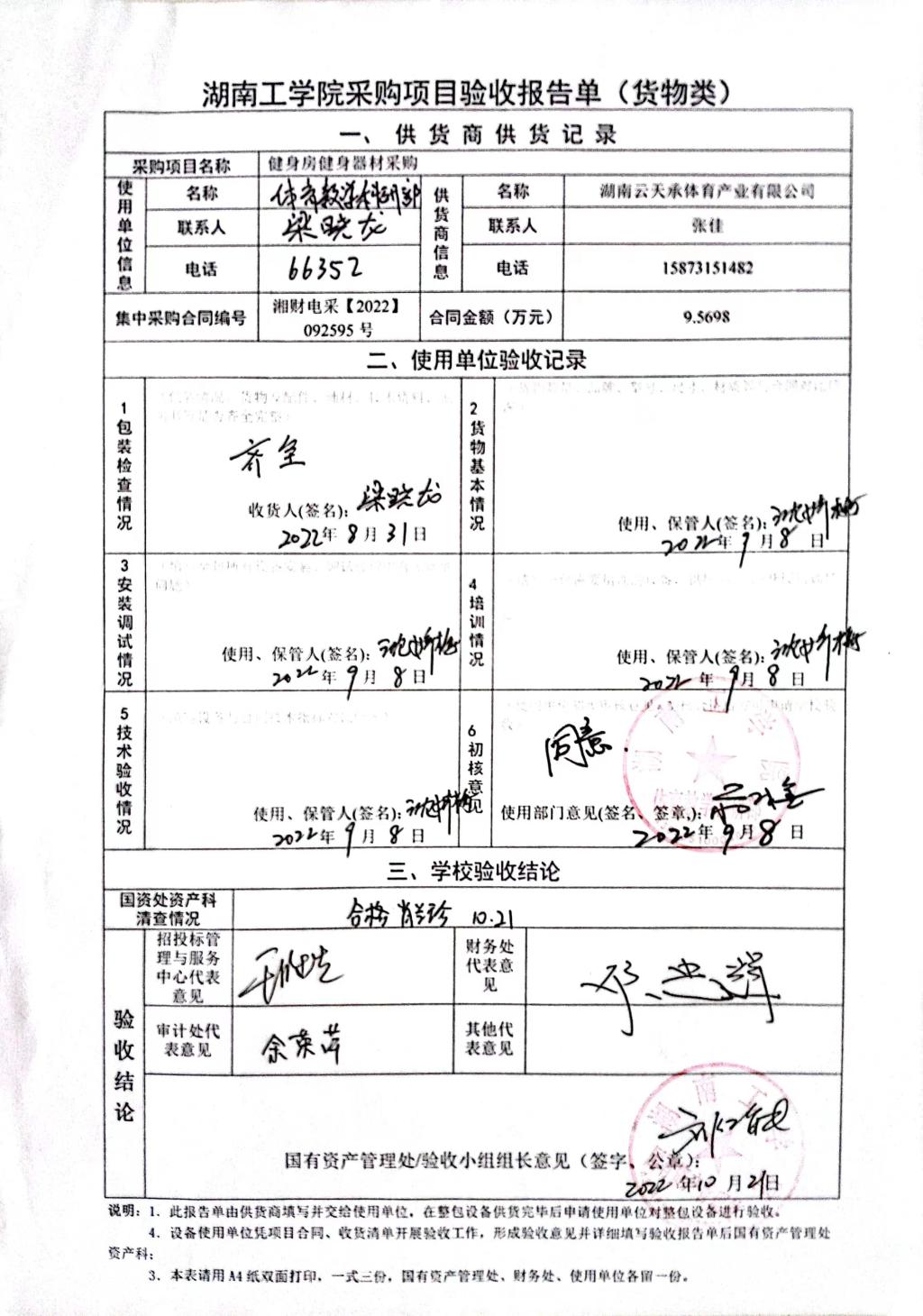 2022年10月关于湘财电采【2022】092595号项目验收情况公告