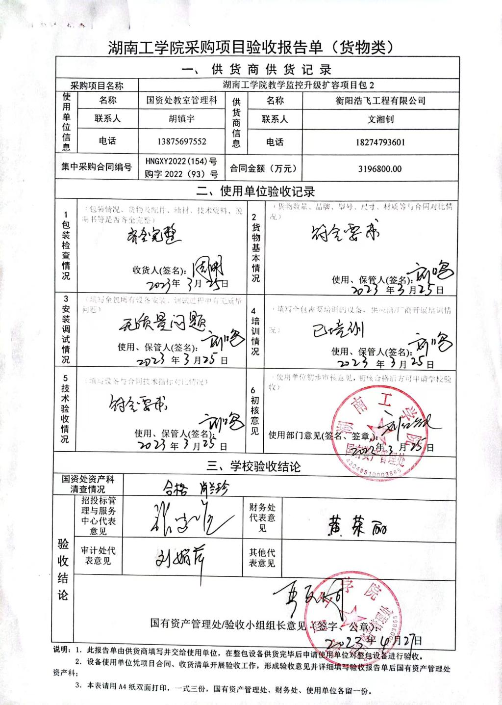 2023年4月关于HNGXY2022【154】号 购字2022【93】号采购项目验收情况公告