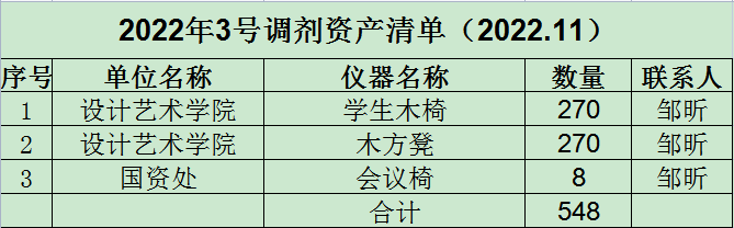 根据《304永利集团官网资产管理办法》相关规定,本着节约办公的原则,现对设计艺术学院一批学生用木椅和木方凳进行校内调剂(详见资产清单)。请有意向的部门即日起与资产管理科联系,现场查看设备,并到我处官网下载填写《304永利集团官网资产调剂申请表》办理调剂手续。本批校内资产调剂从即日起至12月2日截止,逾期将不予办理。