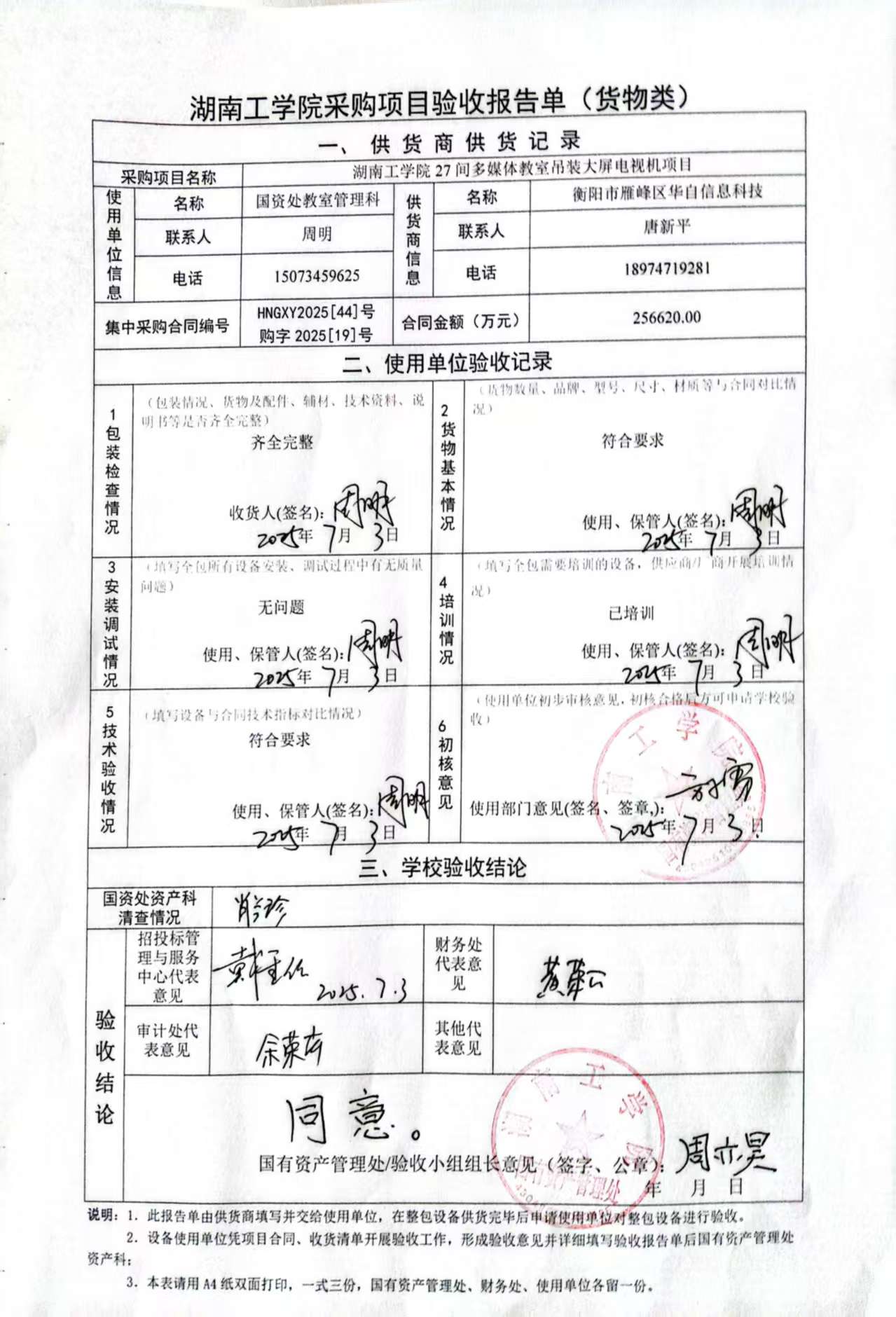 2025年7月关于HNGXY2025【44】号 购字2025【19】号采购项目验收情况公告