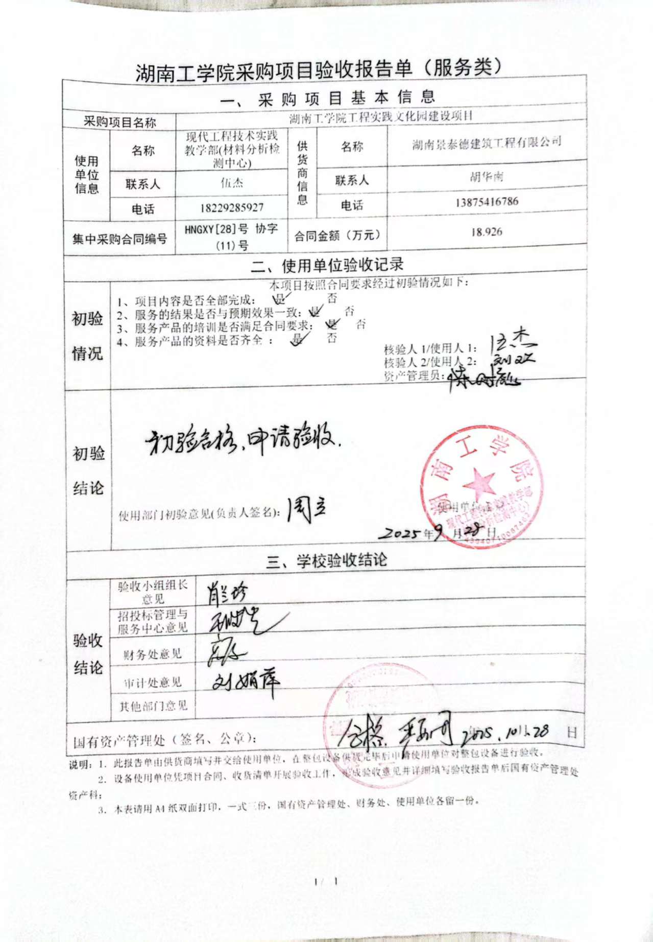 2025年10月关于HNGXY【28】号 协字【11】号采购项目验收情况公告