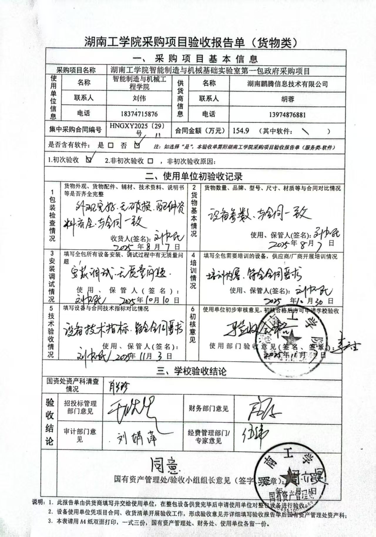 2025年11月关于HNGXY2025【29】号 购字2025【11】号采购项目验收情况公告