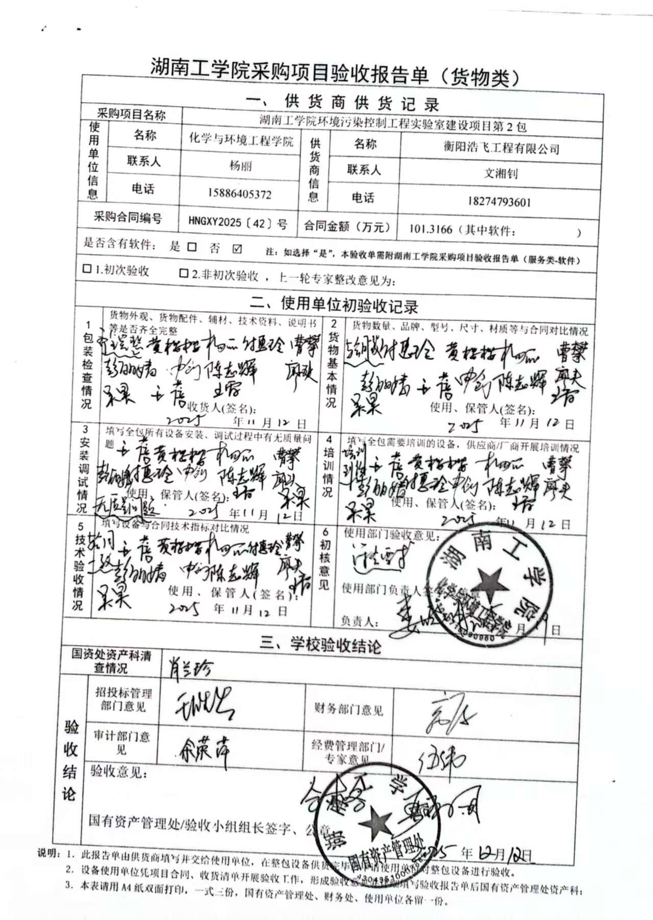 根据国有资产管理处对采购项目的验收安排,2025年12月10日国有资产管理处组织招投标管理与服务中心、审计处、财务处、教务处以及使用部门代表对供应商的项目进行现场验收。