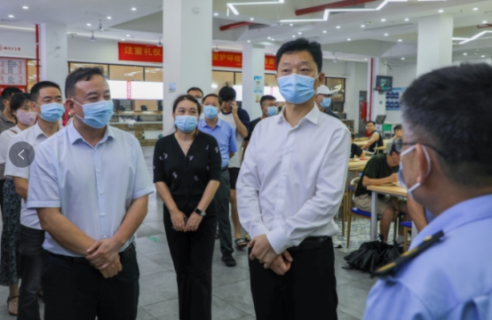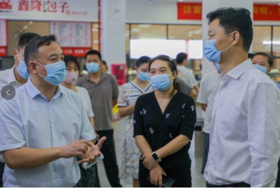 6月24日下午,市委常委、市委秘书长胡果雄一行对我院润泽学生食堂进行督导调研。市委副秘书长段志阳、市委副处级督查专员唐进标、市市场监督管理党组成员、副局长龙华参加调研督导。304永利集团官网党委副书记、校长曾广胜,党委委员、副校长黄红卫,后勤基建处处长贺旭等人陪同督导调研。