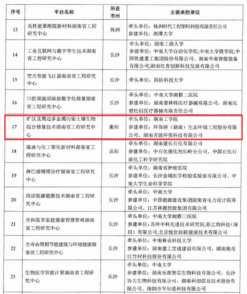近日,湖南省发改委下发了《关于2021年度湖南省工程研究中心建设项目的批复》(湘发改高技〔2021〕1037号),由永利化学与环境工程学院牵头,联合环保桥(湖南)生态环境工程股份有限公司、湖南青涟环保科技有限公司申报的“矿区及周边多金属污染土壤生物综合修复技术湖南省工程研究中心”成功获批!