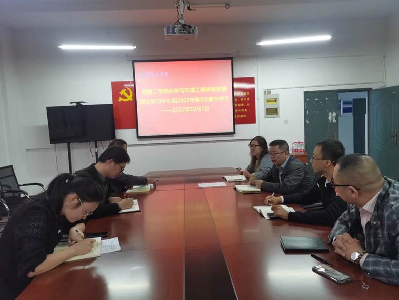 10月7日下午,2022年化学与环境工程学院党委理论学习中心组第8次集中学习在1310举行。会议由学院党委书记周立同志主持,院党委理论学习中心组全体成员参加。