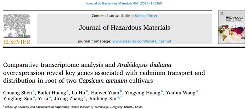 喜讯!我院申创博士等在《Joural of Hazardours Materials》发表最新研究成果