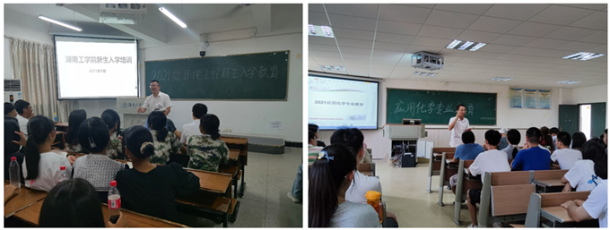 为帮助2021级新生尽快适应大学生活,掌握专业办学特色及学科发展前景,增强与学院教师之间的交流,加强学生对化学与环境工程学院的认同感,我院应用化学专业、环境工程专业、化学工程与工艺专业等3个专业先后在材化楼1301、1514、1515教室举办了新生入学专业教育大会。此次大会由各教研室主任主持,化学与环境工程学院党委书记周立、院长辛俊亮、副书记蔡玲、副院长黄俊歆、副院长刘宁、新生班主任及辅导员参加了此次大会。