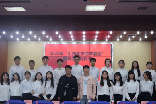 5月23日晚,2022年“汇翔奖学助学基金”颁奖仪式于图书馆二楼报告厅举行。浙江汇翔新材料科技股份有限公司总经理杨洪才、行政总经理魏臣阳、304永利集团官网校友总会办公室(教育基金会办公室)主任贺旭、化学与环境工程学院院长辛俊亮、院党委副书记蔡玲、副院长黄俊歆、副院长刘宁出席本次仪式,学工办主任兼分团委书记陈凌霄、辅导员张元、辅导员冯智发、“汇翔奖学助学基金”全体受资助学生、全体20级及21级化学工程与工艺专业学生参加了本次仪式,仪式由辅导员魏伊楚主持。