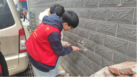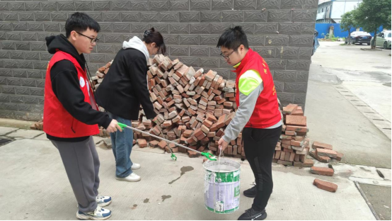 随后,在蒸湘街道办事处的安排下,我们来到了蒸湘街道下属的松亭村进行劳动实践。在实践中,同学们互相合作,齐心协力清除街道的垃圾和楼房外墙、电线杆上的“牛皮癣”。经过同学们的努力,松亭村内两个安置房小区的卫生恢复了干净的状态,得到了过往居民的称赞。
