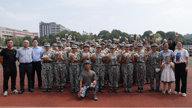 蔡玲代表学院向全体新生致以节日的温馨祝福,高度赞扬了新生们在军训中展现出的高昂斗志及乐观态度。她鼓励同学们要珍惜这段非凡的军训历程,不仅要在体能上得到锻炼,更要在精神上得到升华,点燃爱国之火,传承革命精神,深化国防观念与集体主义情怀培养团结互助的良好作风和严格自律的良好习惯,为即将开启的大学生活奠定坚实的基石。