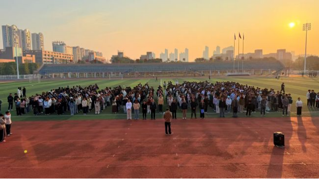 伴随着激昂的《义勇军进行曲》,国旗护卫队步伐铿锵,全体师生肃立注目,五星红旗冉冉升起,激昂的旋律与飘扬的旗帜激发出在场每个人心中的爱国情怀与奋进之志。