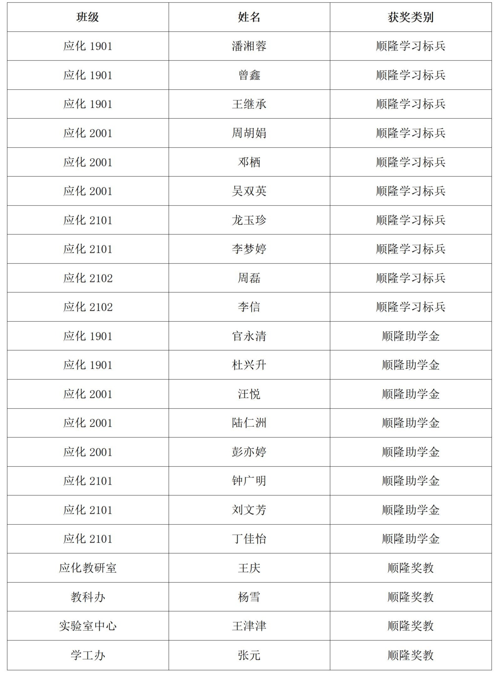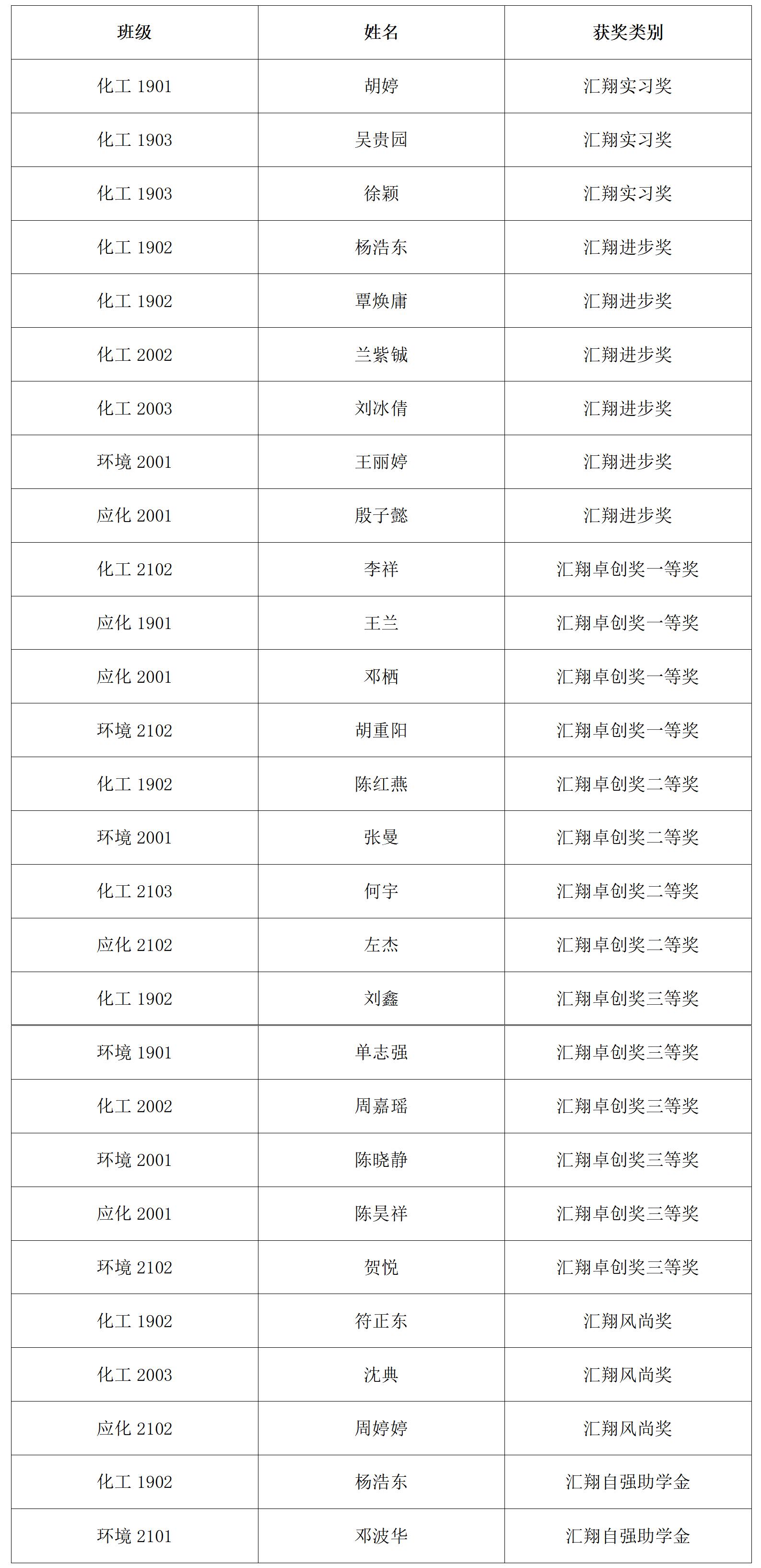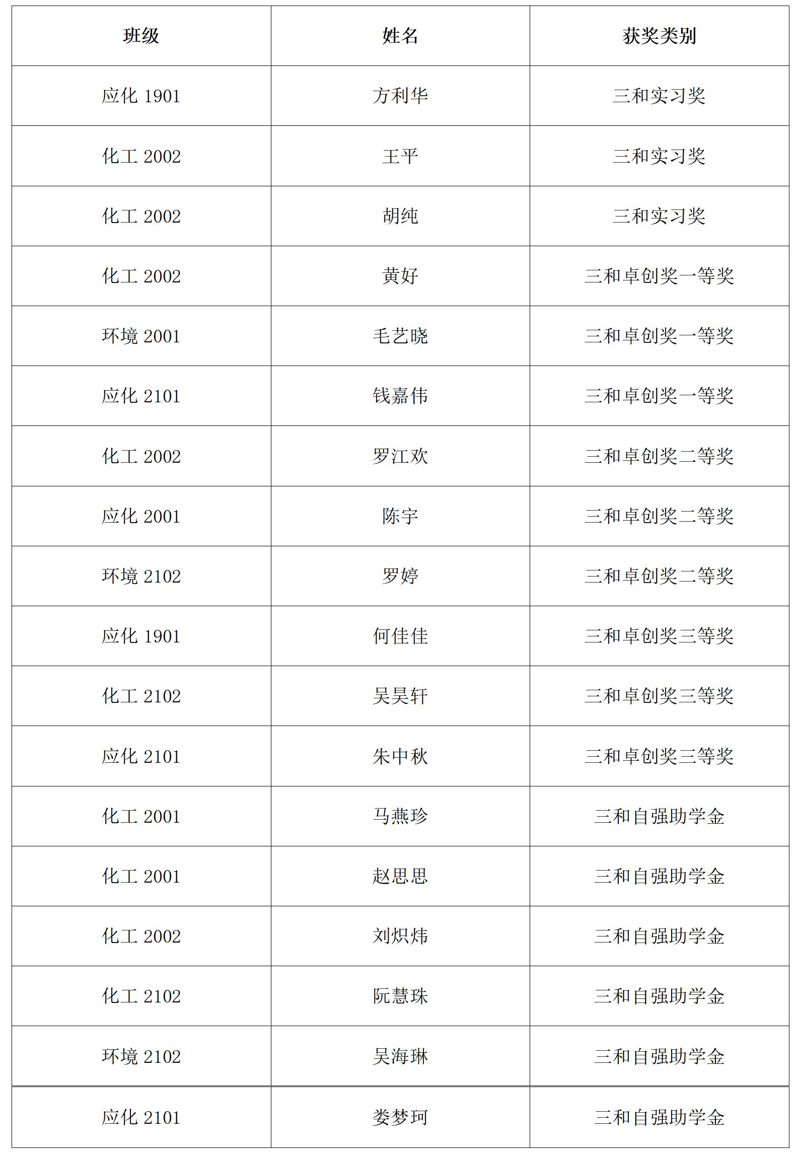 根据《20212022学年化学与环境工程学院“汇翔奖学助学基金”评选方案》、《20212022学年化学与环境工程学院“三和奖学助学基金”评选方案》、《20212022学年化学与环境工程学院“顺隆奖学助学基金”评选方案》文件精神,经个人申请、班级评议、学工办评审、班级公示、学院党委审核、学院党政联席会议讨论通过拟推荐以下同学获得“汇翔基金”、“三和基金”、“顺隆基金”的资助: