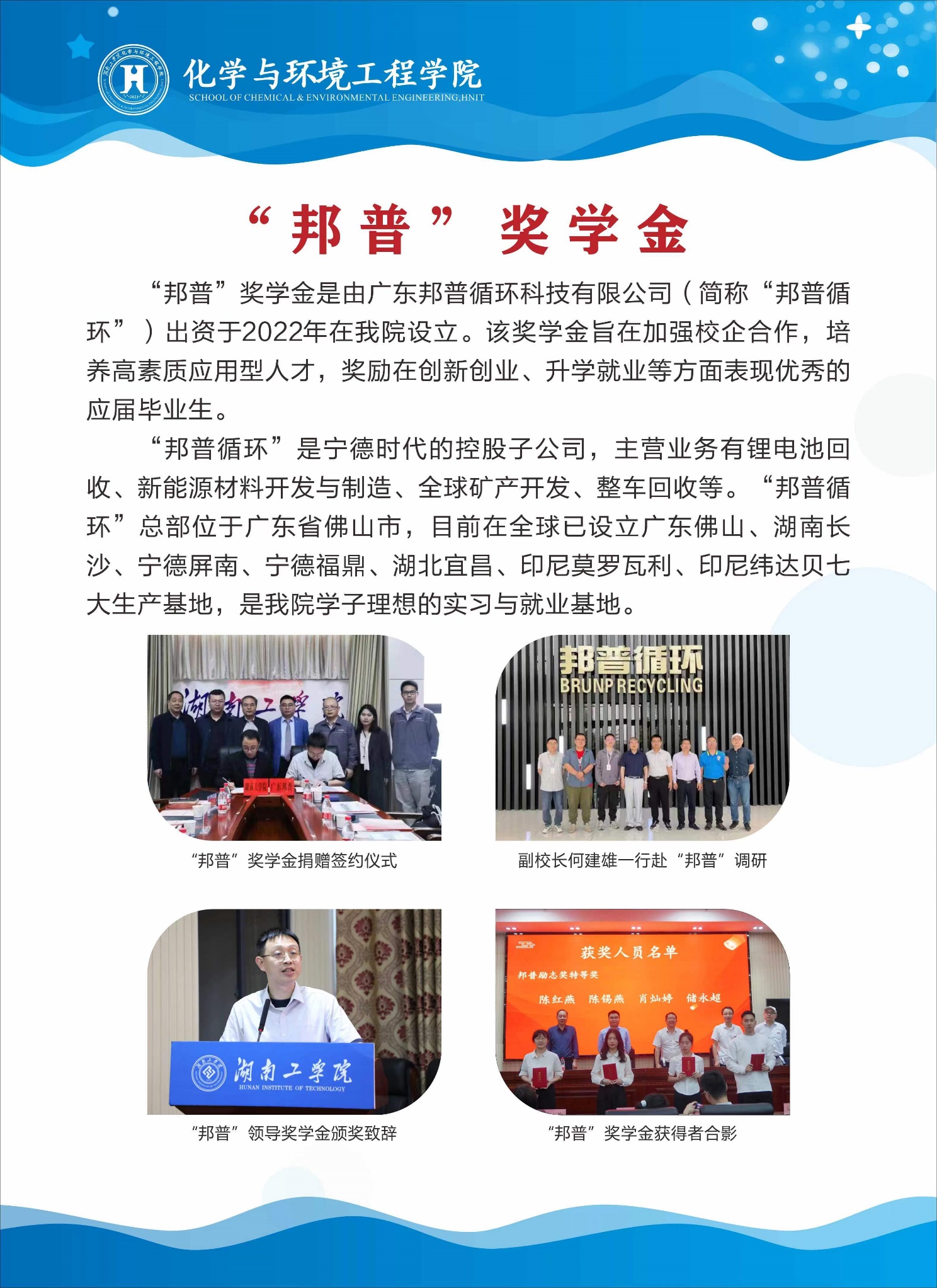 企业奖学金——“邦普”奖学金介绍