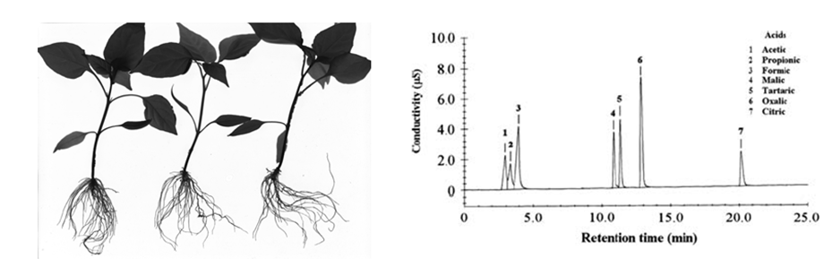 通过分析镉的亚细胞分布和化学形态后发现,辣椒根系液泡是区隔化镉的主要细胞器,而在茎、叶和果实中细胞壁是固定镉的主要细胞器。低镉辣椒品种根系固定镉的能力更强,减少了镉向地上部转运;而高镉品种茎叶中可移动性镉的浓度较低镉品种高,这有利于镉向果实转运。此外,发现高镉与低镉辣椒品种在根系形态方面有明显差异,与高镉品种相比,低镉品种根尖数较少,根长较短,根表面积较小;而根长、根表面积和根尖数与茎叶镉含量和根茎间镉的转运效率显著正相关。特别是,根尖凯氏带不完整而且侧根形成会破坏根原基附近凯氏带的完整性,这有利于镉通过质外体途径从凯氏带破损处进入中柱继而向地上部转运。我们还发现高、低镉辣椒品种根际可交换态镉含量并无明显差异,这可能与它们根系吸收镉的能力类似有关。低镉品种根系分泌的低分子量有机酸总量与高镉品种也无差异;然而,低分子量有机酸的组成与镉胁迫强度和品种有关。