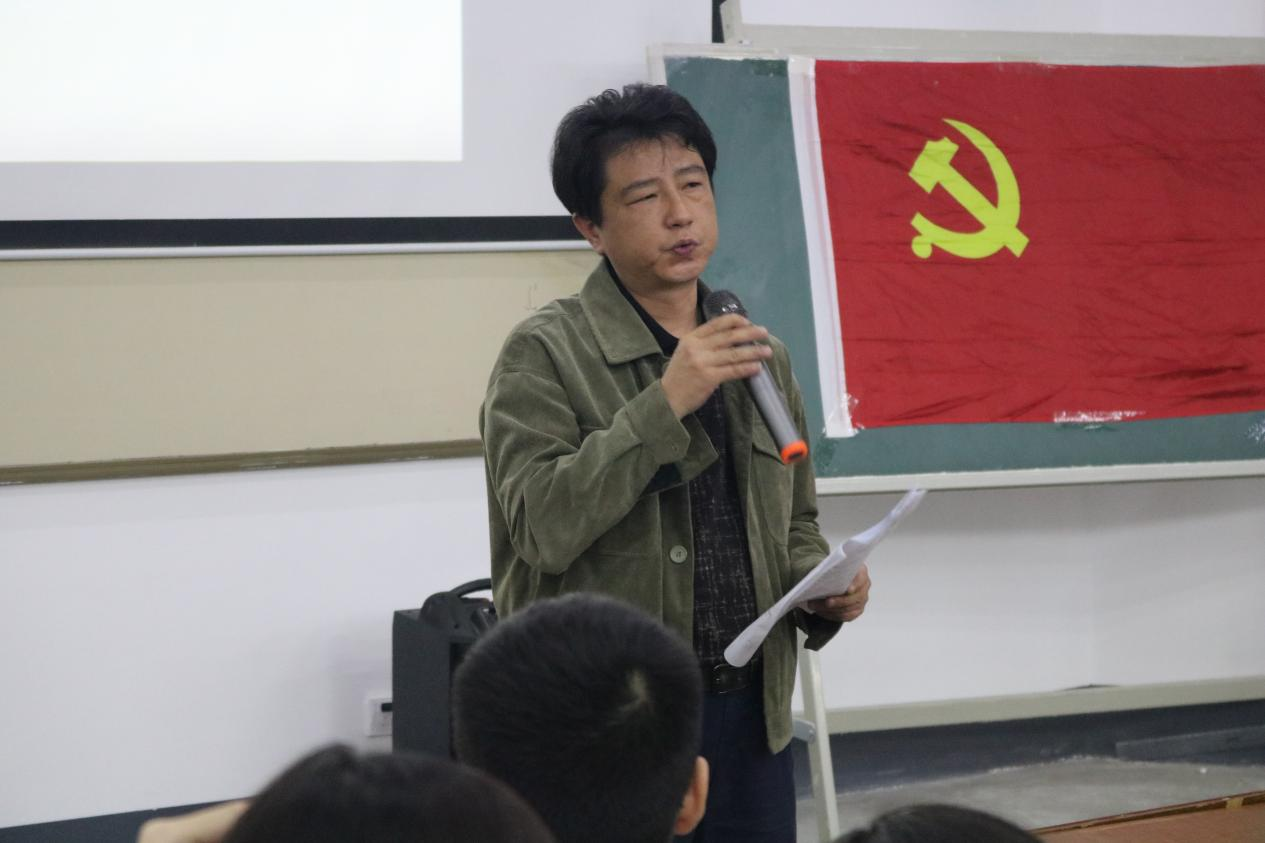 4日晚,第一堂课张帆书记以“以史为鉴 开创未来”为题讲述了一节新形式的党课培训,他先以图片的形式吸引大家的注意力,再根据图片的时间背景,引申出中国共产党在各个时期所面临的不同问题,而后他强调“历史和现实都告诉我们,一场社会革命要取得胜利,往往需要一个漫长的历史过程”。
