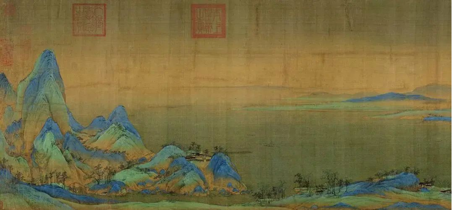《千里江山图》是宋代画家王希孟的绝世之作,画下大宋的锦绣河山,以此象征江山永固,绵延千年。被视为宋代青绿山水中的巨制杰构。