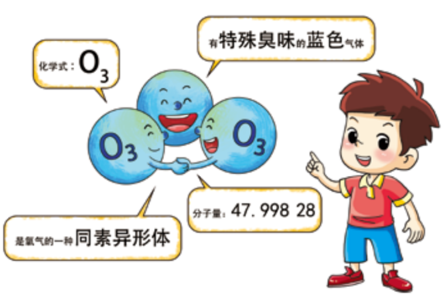 臭氧(O3)是天然大气的重要微量组分,分子量为47.99828。大气中的氧分子受太阳辐射分解成氧原子后,氧原子又与周边氧分子结合,可以形成O3,因此,O3含有3个氧原子,是氧气的一种同素异形体。在常温下,它是一种有特殊臭味的蓝色气体。