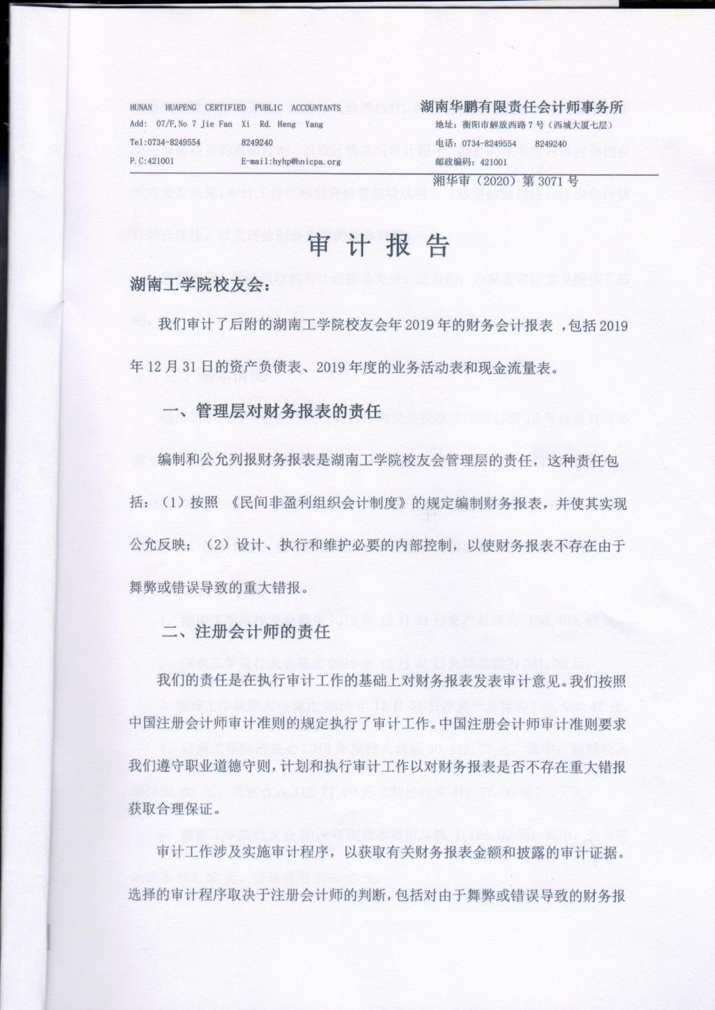 2019年304永利集团官网校友会审计报告