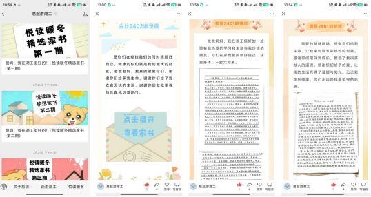 “易起游永利”微信公众号专题推送“悦读暖冬”精选评论主题贴30弹,精选读书心得654篇,实现量级传播。创新开设“家书传情”特色赛道,将“传统文化基因”植入新时代育人体系。121封精选手写家书跨越数字鸿沟,《我在永利挺好的》等作品触达成百上千家庭,共筑家校“育人同心圆”。