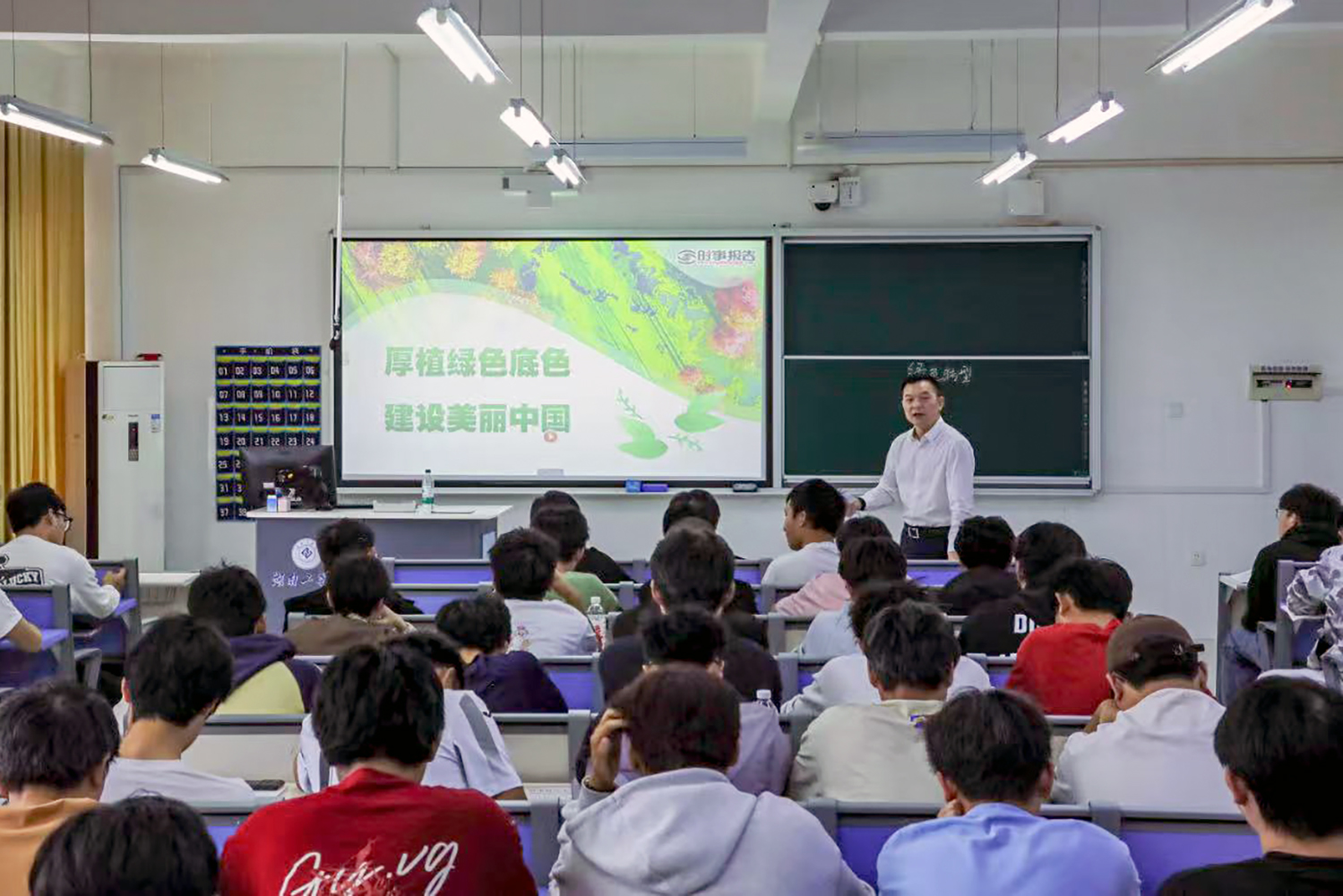 学校党委书记曹执令以“厚植绿色底色 建设美丽中国”为题,为土木2401-02班同学授课。他从学理上科学阐述了绿色发展和绿色转型的概念,分析解读了绿色转型的必要性和紧迫性,系统梳理了绿色发展理念及政策发展历程,运用鲜活的案例展示了新时代以来我国创造的举世瞩目的生态奇迹和绿色发展奇迹,鼓励同学们要积极参与到生态保护和绿色发展中来,通过实际行动践行绿水青山就是金山银山的理念,以青春行动助力全面推进人与自然和谐共生的现代化。