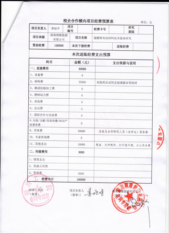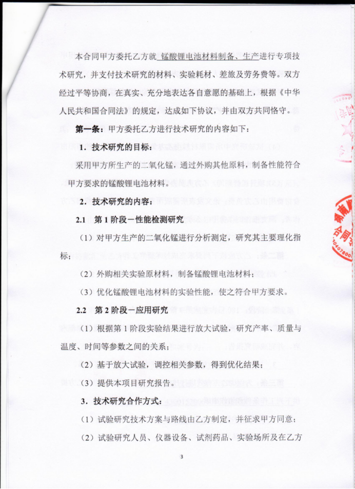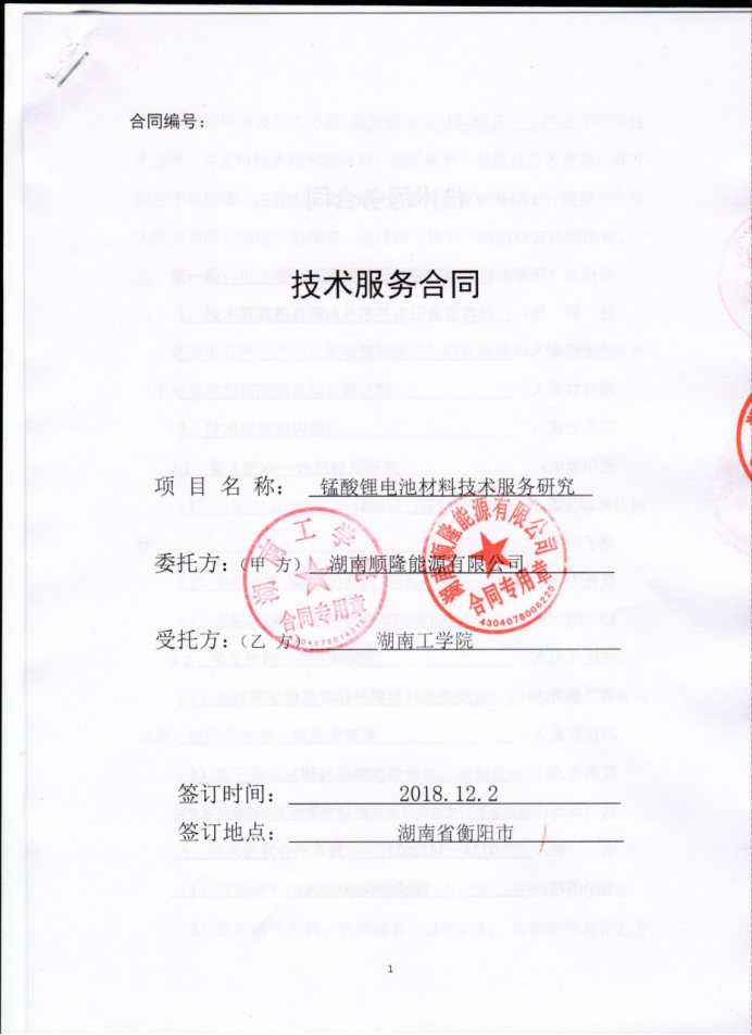(1)技术服务合同—锰酸锂电池材料技术服务研究