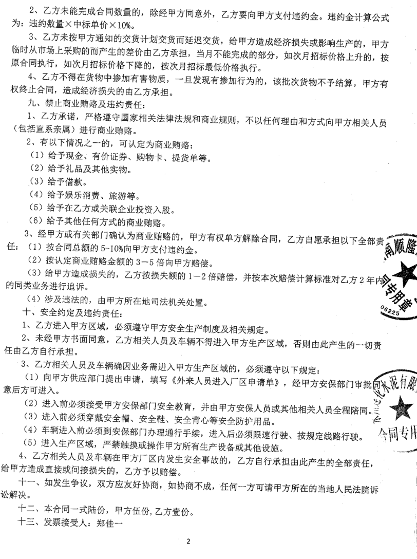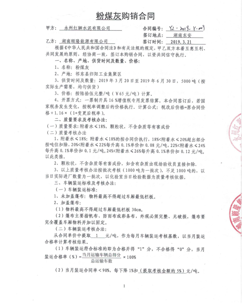 (5)永州红狮水泥有限公司与湖南顺隆能源有限公司粉煤灰购销合同