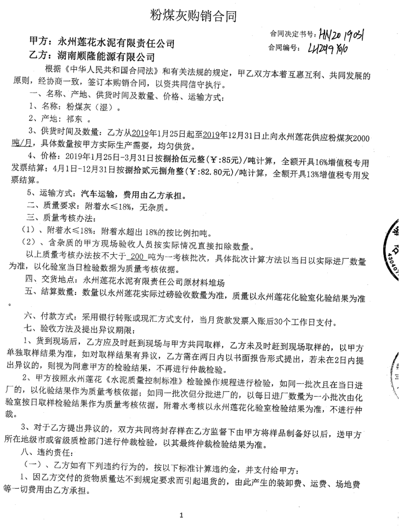 永州莲花水泥有限公司与湖南顺隆能源有限公司 |