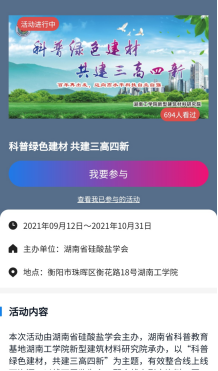 活动参加方式: 我院参加了全国科普日公益活动,“科普绿色建材,共建三高四新”,请大家多多支持!