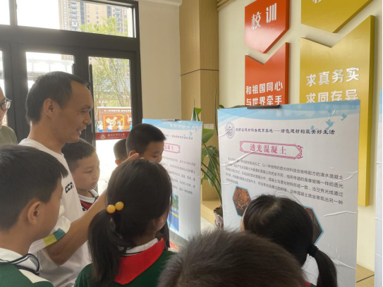 916日上午新型建筑研究院开展了全国科普日活动。本次科普活动的地点为可津小学,主题是“科普绿色建材 共建三高四新”。活动由娄晓明院长全程策划,曾盛渠副院长带队实施,张涛博士负责精选科普内容,张庭老师负责后勤保障,研究院全体同志出谋划策。曾盛渠副院长、顾问胡波年教授、首席专家李坦平教授、实验中心主任欧丽娟教授以及无机非教研室主任熊鑫博士现场讲解。可津小学陈宁校长和教导主任吴雅沁对此次科普活动表示热烈欢迎,并强烈要求今后能常态化此类活动,给孩子们更多接触科学的机会。