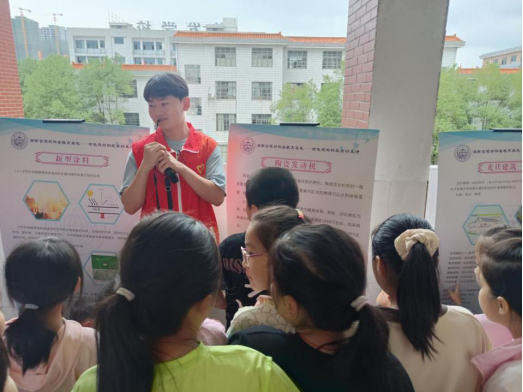 9月14日下午304永利集团官网新型建筑材料研究院娄晓明院长带领研究院的博士们和应用化学、无机非金属材料工程以及化学工程与工艺专业的大学生志愿者,在衡阳市英发学校开展了“双碳背景下的低碳理念,建材科普助力’双减’”全国科普日主题活动。此次活动通过知识展板、影音资料、实物模型、应用实例等形式,深入宣传新型建筑材料在节能、环保中的作用,契合“双碳”理念,使绿色建材观念植根于小朋友们的脑海里。活动受到英发学校校领导的热情欢迎。