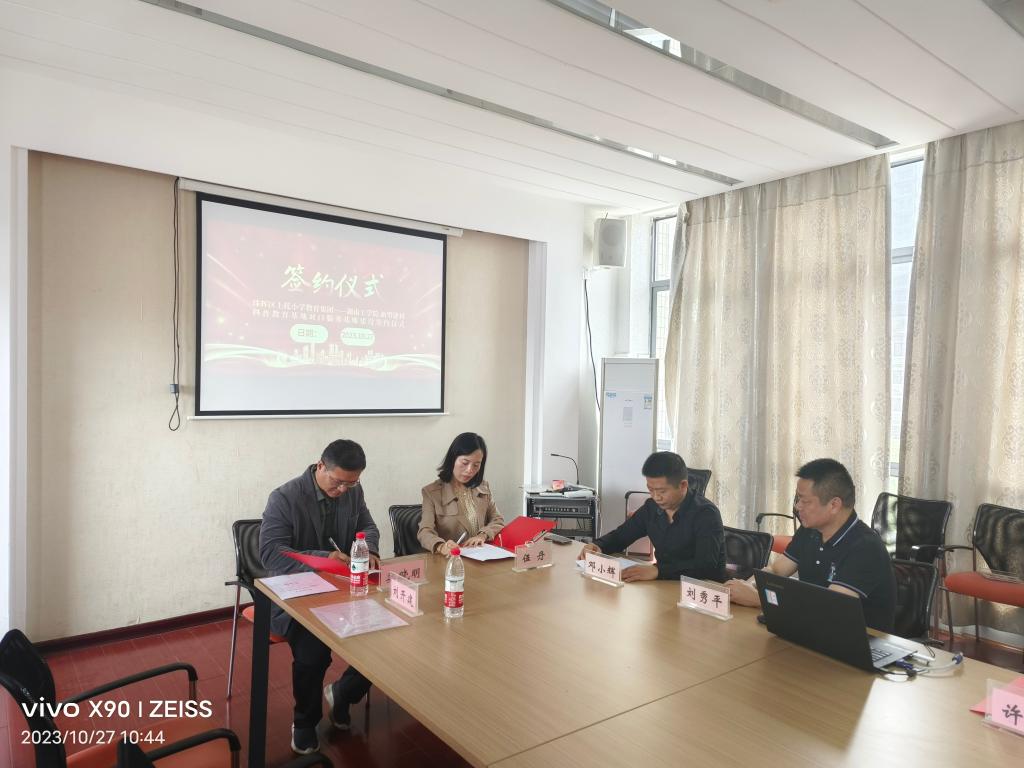 2023年10月27日上午,新型建筑材料研究院院长娄晓明教授带队来到珠晖区上托小学签约新型建筑材料科普教育基地对口服务基地协议,上托小学校领导伍丹、邓小辉、许婷等接待了娄院长一行。