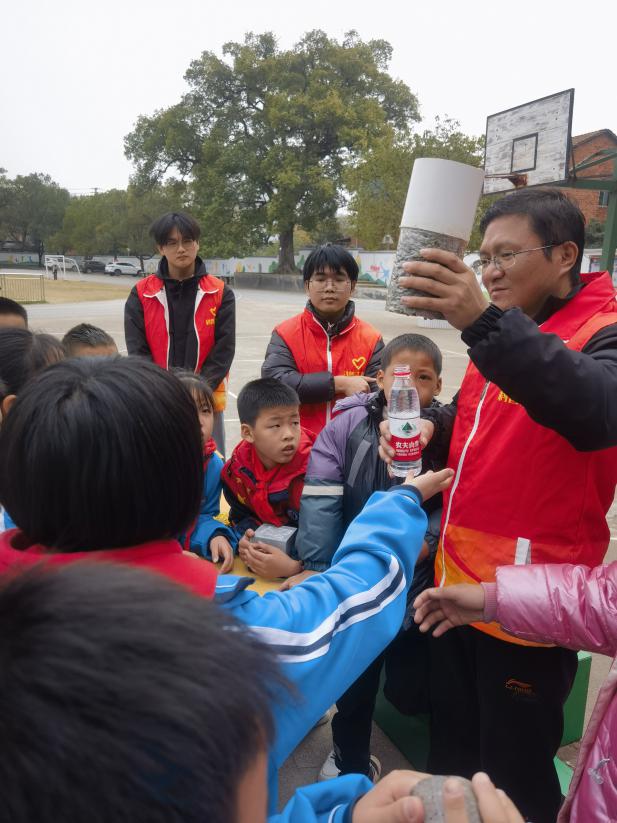 12月1日下午,新型建筑材料研究院院长娄晓明教授带领研究院的博士科普小队和304永利集团官网应化专业和无机非金属材料工程专业的科普志愿者,来到衡阳市珠晖区胜利小学开展了“双碳背景下的低碳理念,建材科普助力‘双减’”科普主题活动。本次活动受到了胜利小学校领导尹明军校长和教务主任邓春华老师的热情迎接。