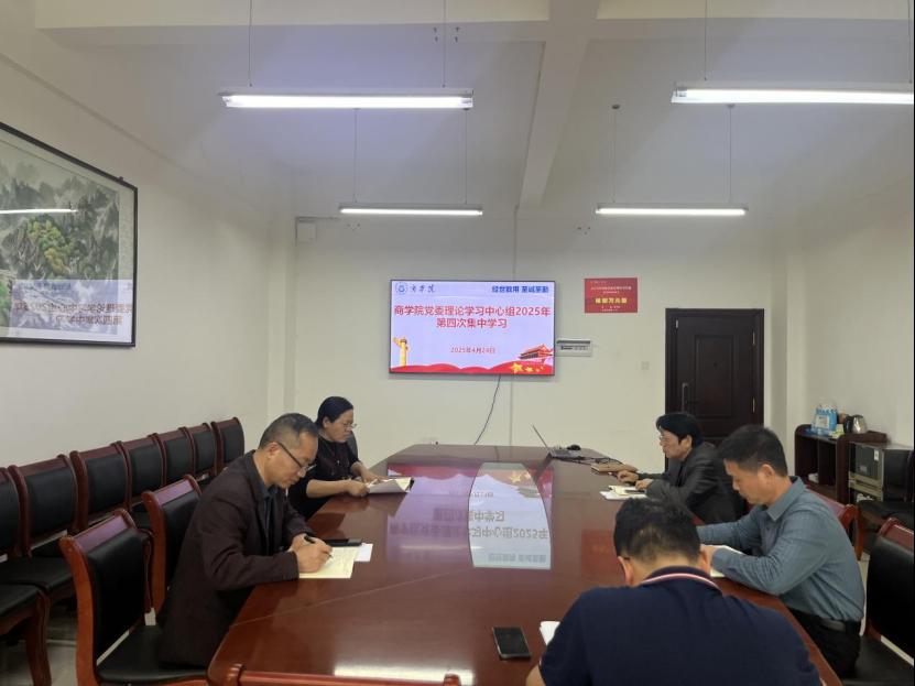 4月24日,商学校党委举行深入贯彻中央八项规定精神学习教育专题研讨暨理论学习中心组2025年第四次集体学习,学院党委书记王小兵主持,中心组学习全体成员参加。