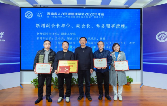 2月19日,湖南省人力资源管理学会2022年年会暨“数智时代人力资源管理实践与发展”高峰论坛在长沙理工大学隆重举行。200余位管理专家学者、企业家、高管以及人力资源负责人、高校负责人力资源管理专业建设的院系领导、从事人力资源管理、组织行为学等课程的负责人、骨干教师、硕博士研究生参会。湖南省十一届人大常委会副主任、党组副书记,湖南省人力资源管理学会会长陈叔红,长沙理工大学原副校长、教授/博导叶泽出席本次论坛并致辞。南京大学资深教授/博导、湖南省人力资源管理学会名誉会长赵曙明、华中科技大学二级教授/博导龙立荣,中南大学二级教授/博导、湖南省人力资源管理学会执行会长颜爱民等领导嘉宾参会。活动现场举行了湖南省人力资源管理学会新增副会长单位、副会长、常务理事授牌仪式。永利获批为湖南省人力资源管理学会副会长单位,商学院院长王小兵教授被聘为学会副会长。