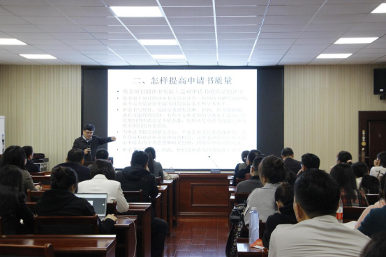 4月20日下午,湖南工商大学硕士生导师朱开悉教授莅临经济与管理学院,开展题为如何提高科学基金申请质量的学术讲座。讲座由院长赵少平教授主持,党委书记张忠贤、副院长朱纪红李闯、党委副书记赵晓军及经管学院全体教师聆听讲座