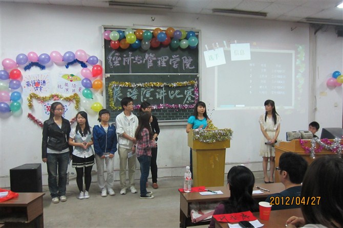 427晚,经济与管理学院英语演讲比赛于T2教室隆重举行。经管学院院长杨凤鸣、副院长赵少平、党总支书记袁勤、副书记黄春喜及王阳、罗永辉等多位老师莅临本次比赛。